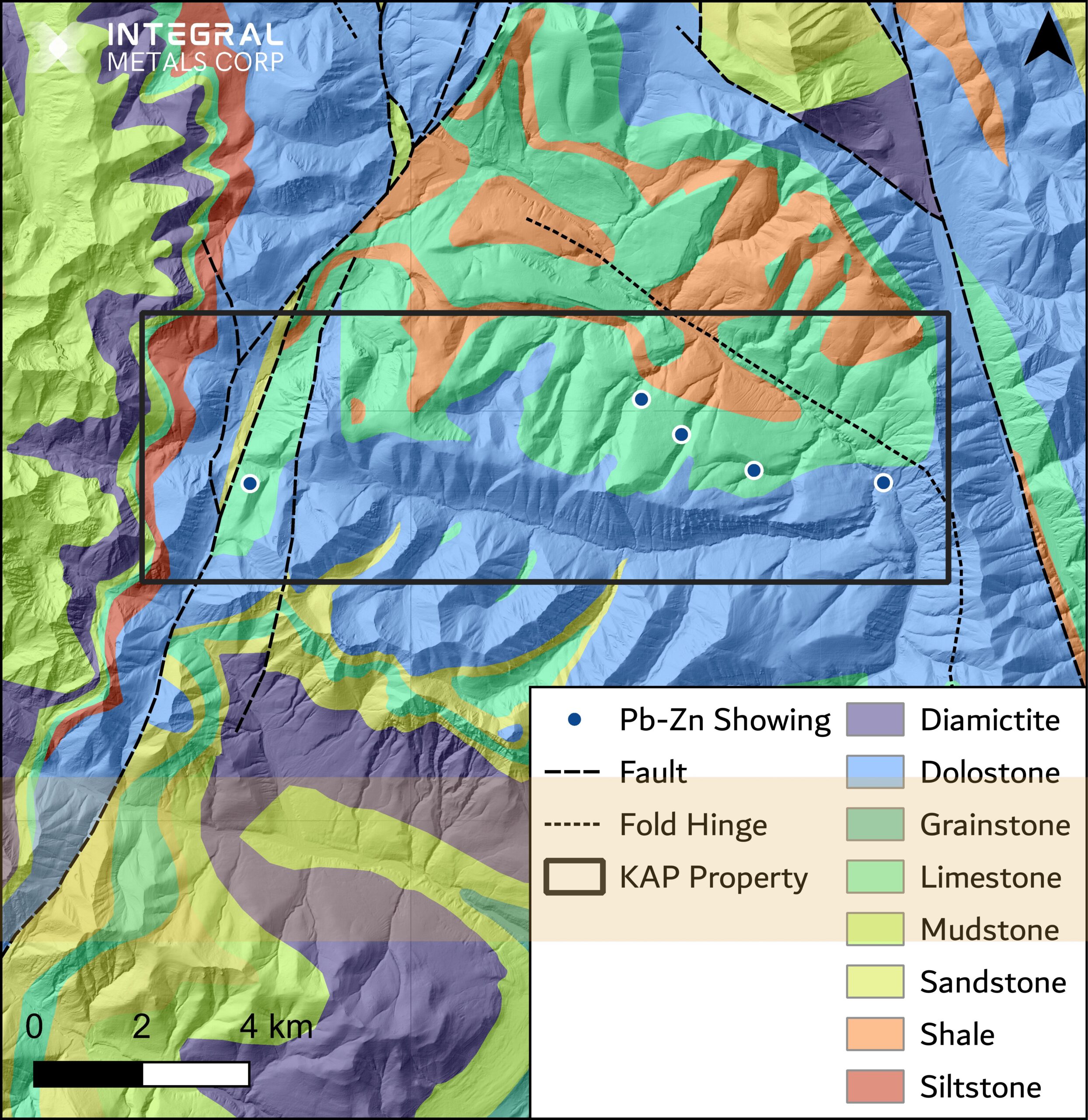 - Integral Metal’s KAP Property encompasses the entire mineralized southwest fold limb and hinge.