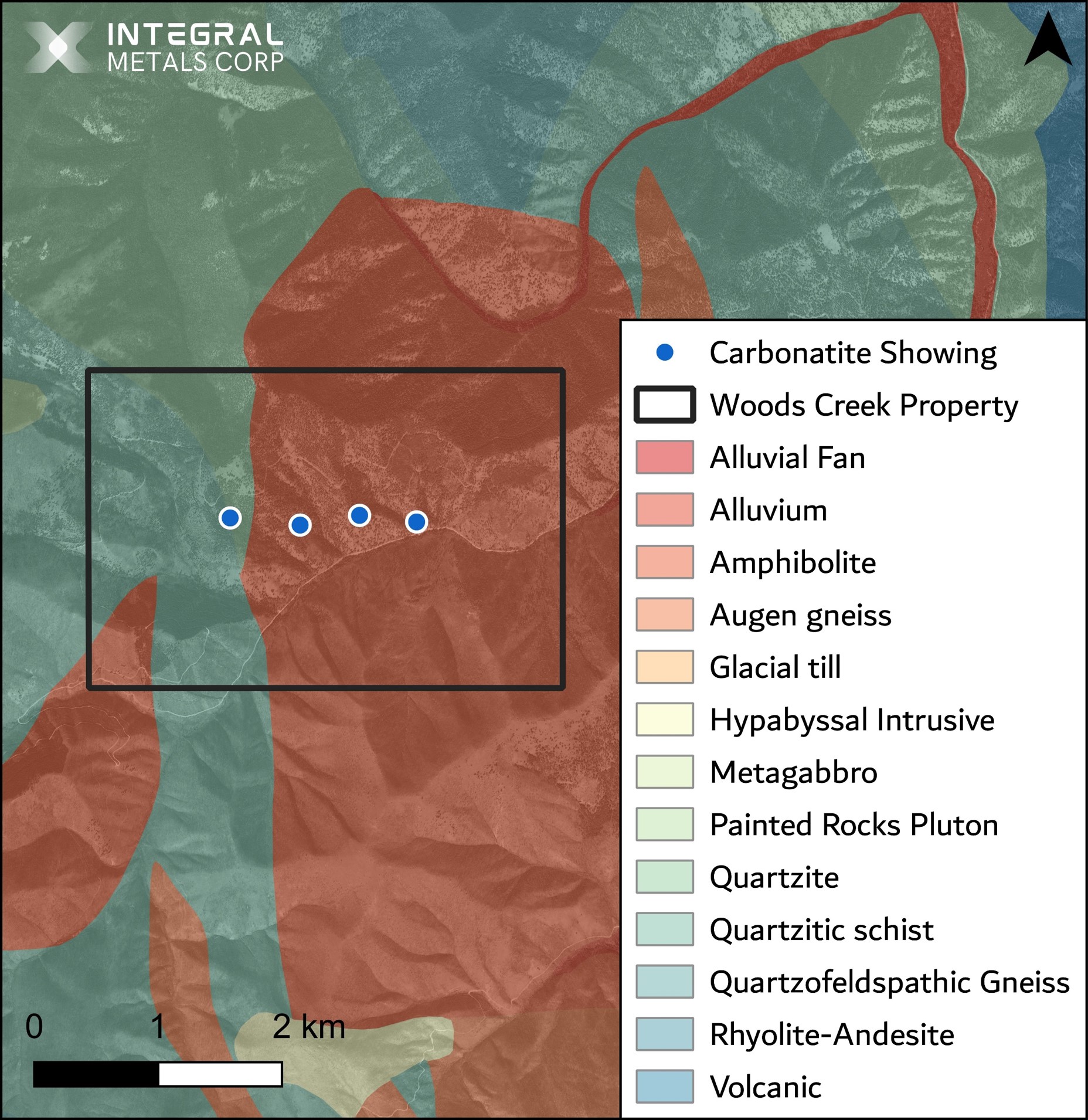 - Located in a similar Mesoproterozoic geological units as the nearby Sheep Creek REE + Gallium project by U.S. Critical Materials. Evidence of hydrothermal activity, geological structure, and mineralization distribution support the Company's thesis of emplacement of rare metal-bearing carbonatite units at the property.