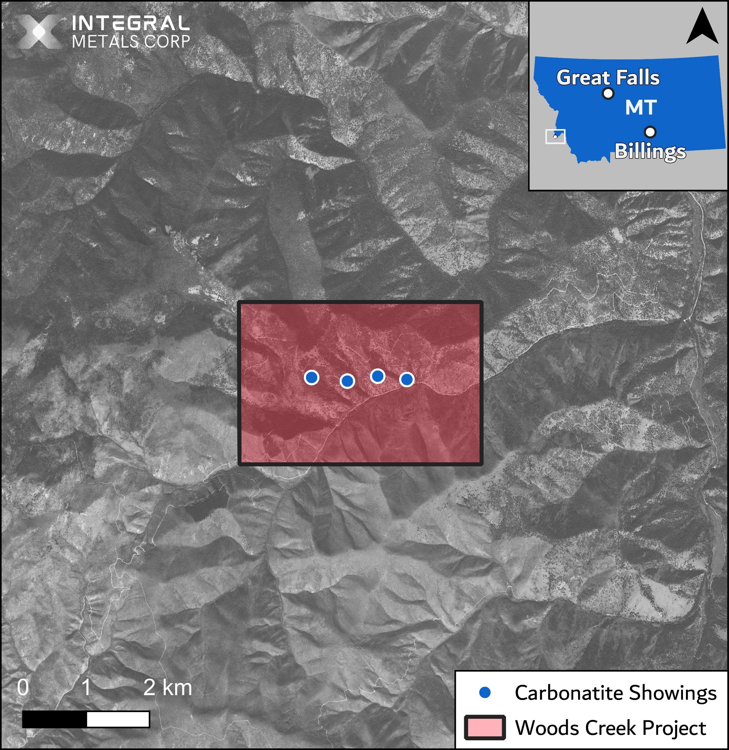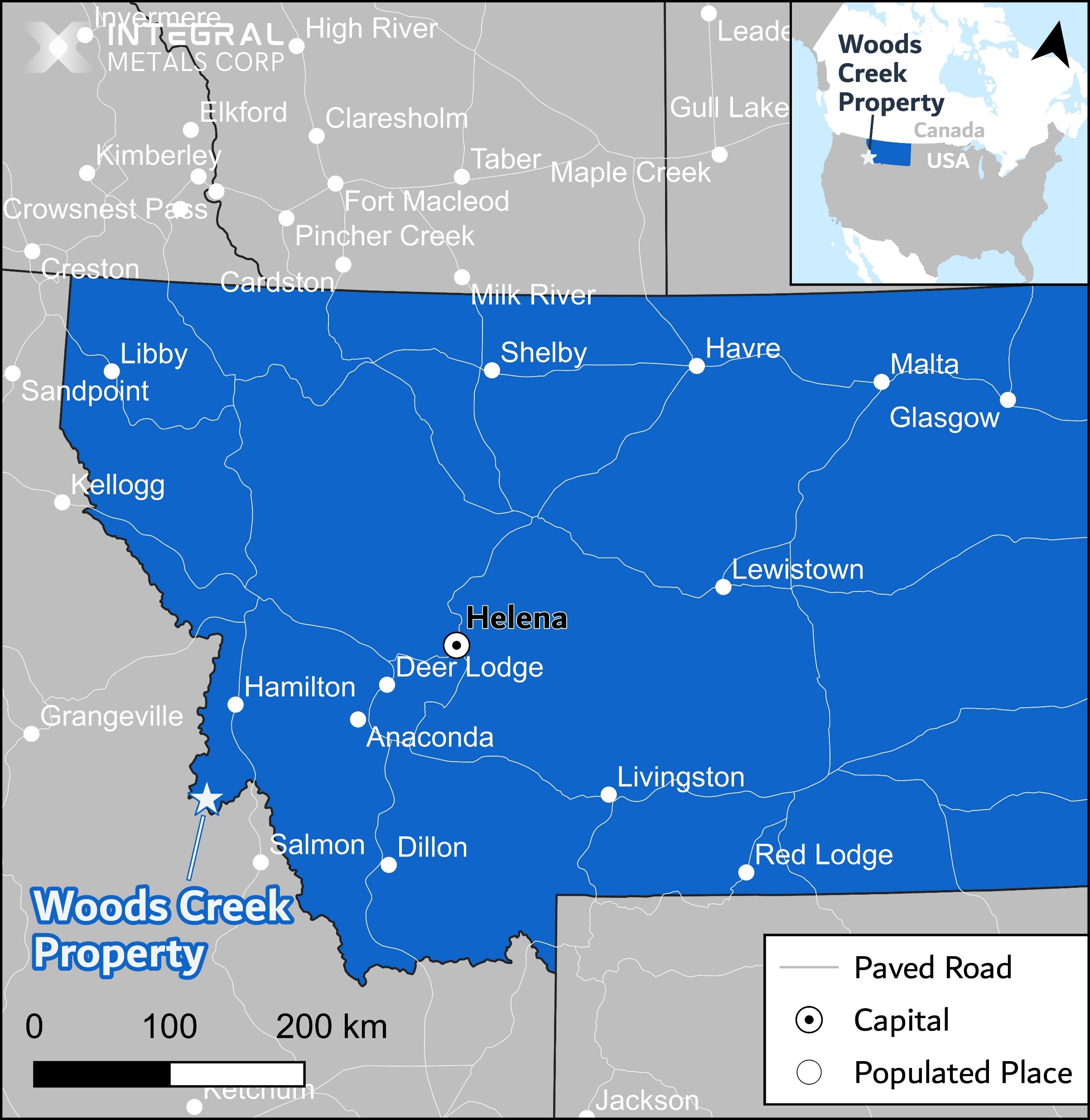- The project is situated approximately 70 kilometers south of Darby, MT. The location has road access via the Woods Creek Road.